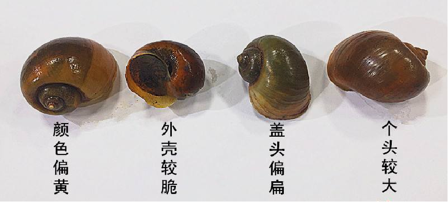 ·福寿螺椎尾较平而短促,田螺的椎尾长而尖;
