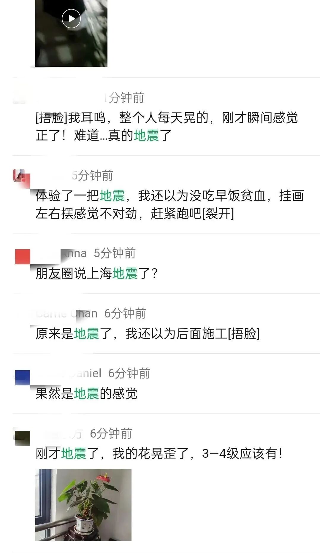 同时,在第一时间,小编朋友圈及众多网友向南翔生活网告知,他们在嘉定感觉到了震感。