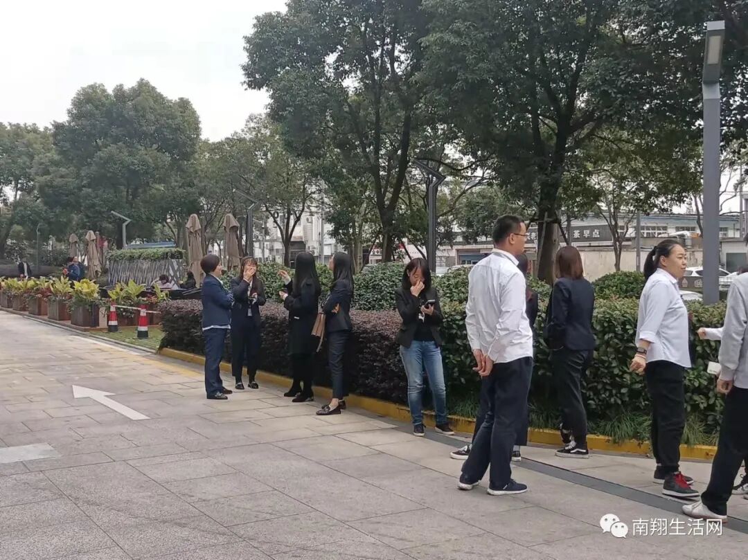 而位于南翔环球大厦,很多人感受到震感后,速度来到一楼楼外空地。