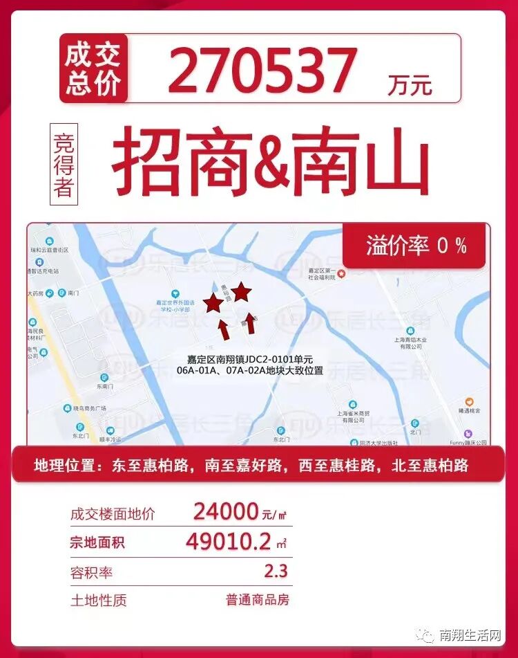 【突发】刚刚!南翔、安亭2幅优质宅地35.9亿成交!招商历史性挺进嘉定!