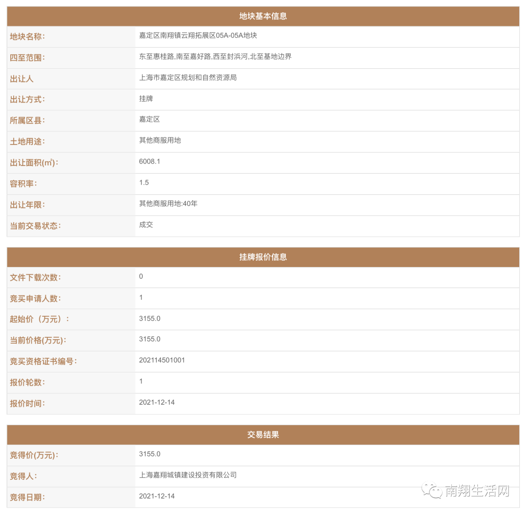 来源 | 上海土地市场、嘉定区南翔镇人民政府