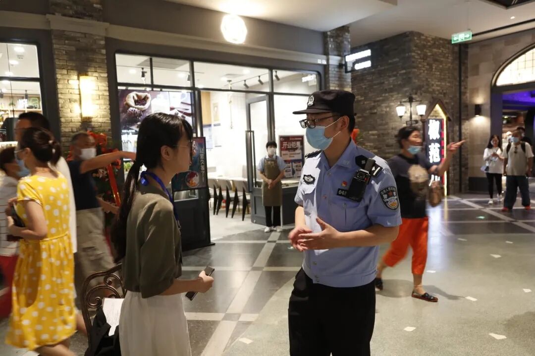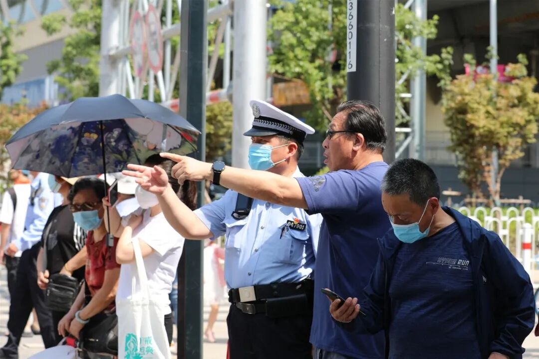 ▲民警在现场解答游客的询问,并指导安保人员开展工作。