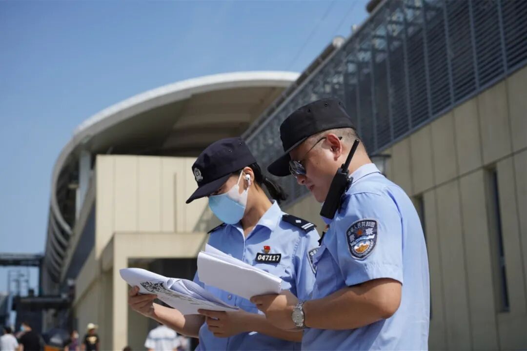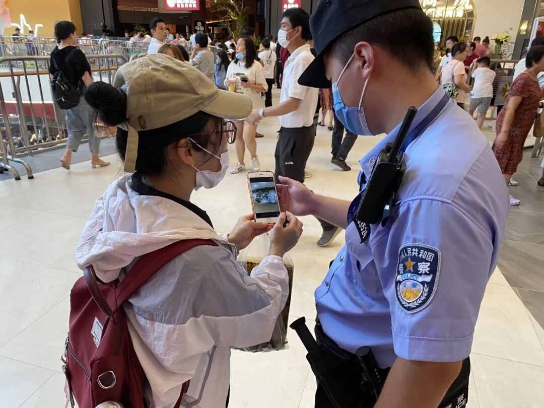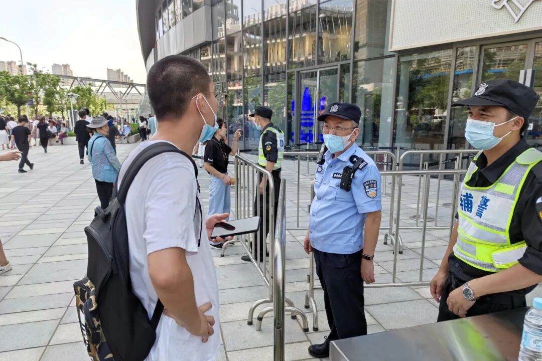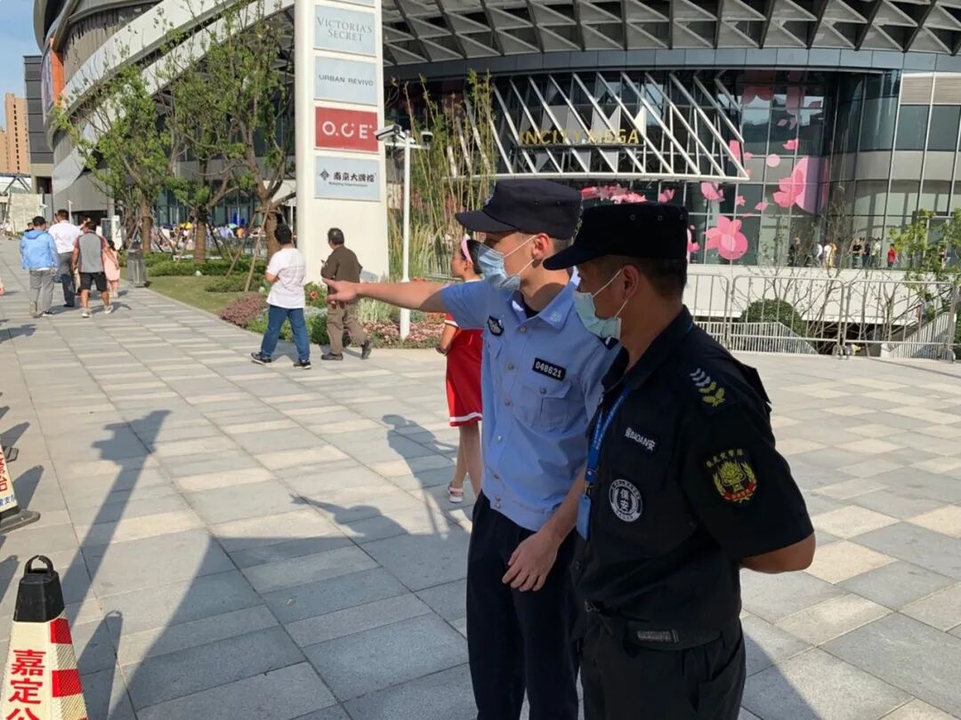▲ 民警在印象城安保现场对表确保工作万无一失。