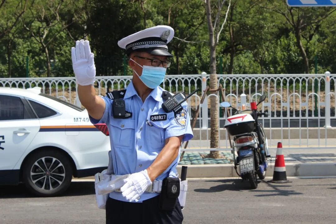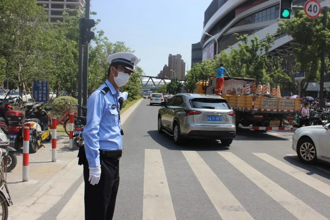 ▲ 民警认真观察周边道路通行情况,随时准备应对路面突发状况。