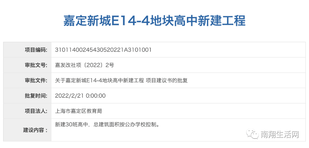 根据嘉定发改委批复材料:上海市嘉一实验高中规划30班级!