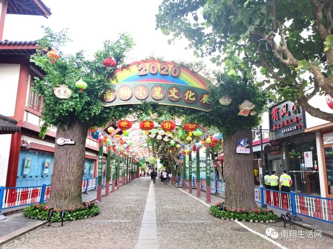 在解放街民主街路口,两棵枝干遒劲、绿意盎然的“大树”上结满了满脸欢笑的“小笼表情包”;在门楼后50米花灯长廊上,挂满了由南翔动漫企业原创的动漫IP形象和小笼彩灯。