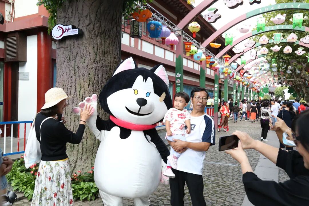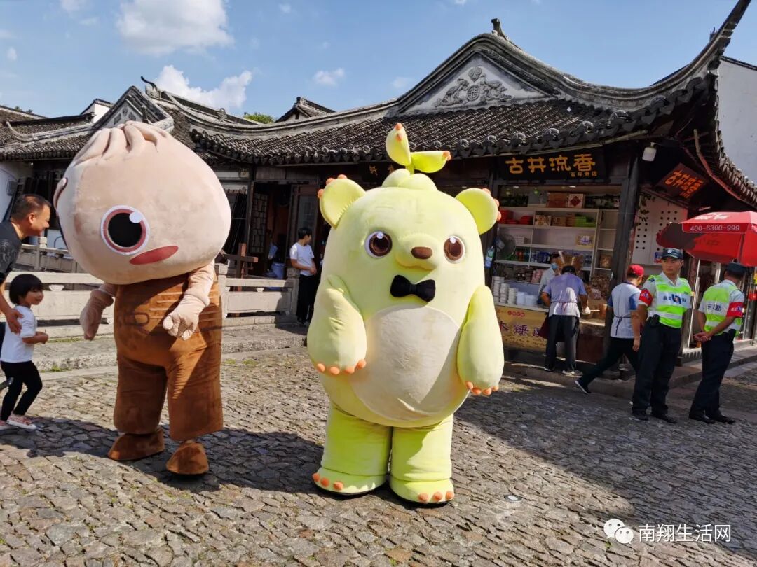 萌芽熊、包呫呫、粽英雄……走进南翔老街,一个个熟悉的动漫人偶正忙着和游客们互动。