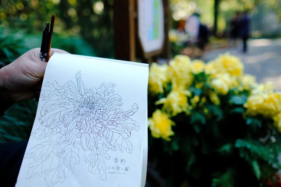 今年嘉定菊展展出近2万盆菊花,包括名优特新品种菊花100余种,设菊球、菊桩、塔菊、悬崖菊、盆景菊等多种造型,万紫千红,婀娜可爱,勾勒出秋日里一道瑰丽风景,引来游人拍照合影,绘画写生。