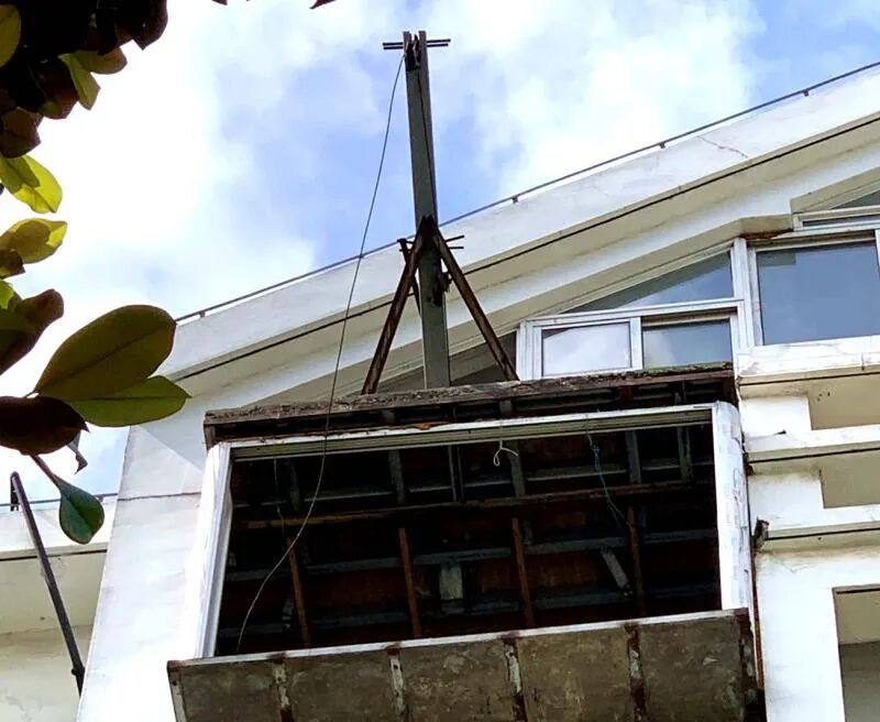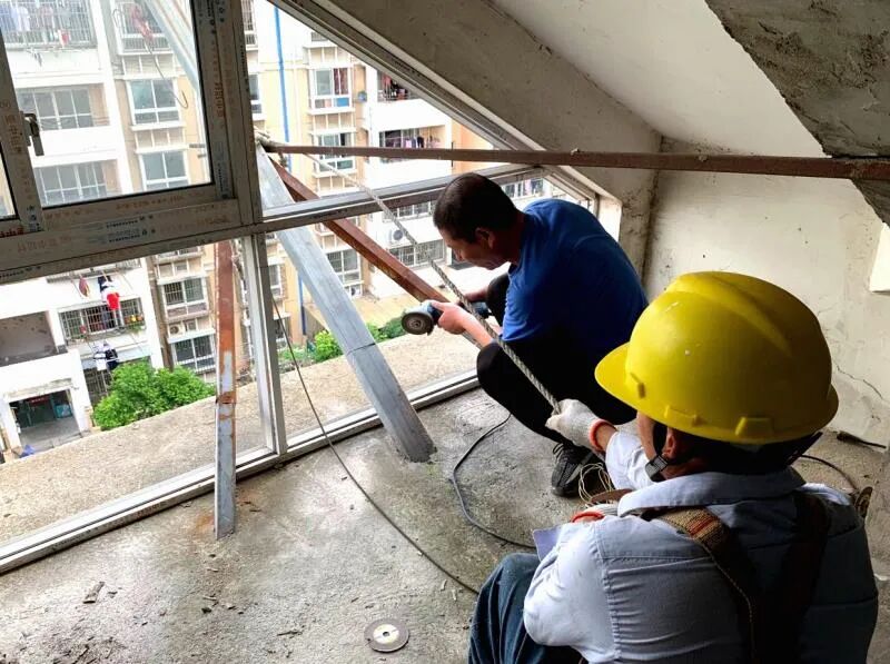 居委会多次联系房主要求其立即整改,但是房主不配合。居委会与物业公司请来专业施工队,对这个存在严重安全隐患的铁制吊架予以拆除。施工人员首先清除了吊架附近的旧木板,固定好窗口,随后用绳索将吊架固定,并用切割机将其拆除。