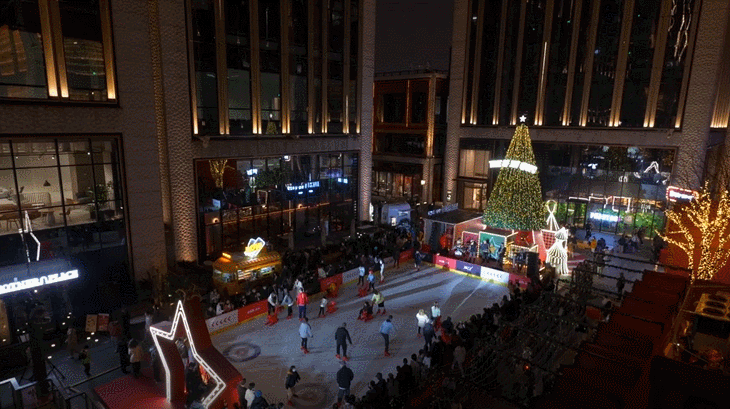 在BFC外滩广场中央区域,建造出了一座200平米户外冰场。冰场使用比赛赛事级制冰技术,冰质均匀、不易化冰,带来顺畅的滑行体验。北区广场上每晚都还会上演12分钟的完整版幻影灯光表演,采用光影视觉科技。