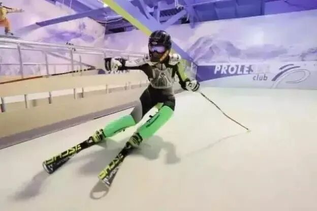 有属于儿童的专用护具和头盔。室内采用全智能滑雪设施,Maxxtracks大型雪机训练设备,9-13度可变的雪道坡度,大单面镜反馈滑雪动作。