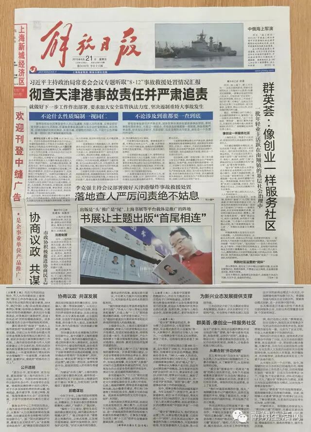 【祥乐享】《解放日报》头版报道南翔生活网,看看说了啥!