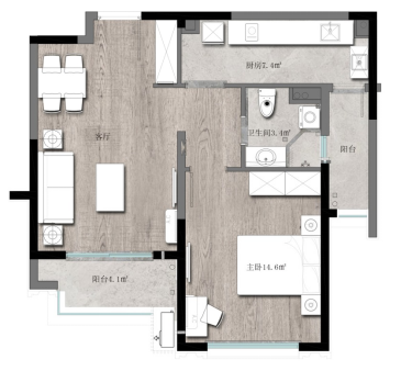 一居室(74.95~75.34㎡/套) 月租金区间:3300~3700元