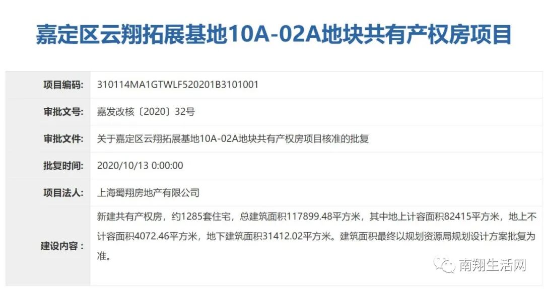 关于嘉定区云翔拓展基地10A-02A地块共有产权房项目核准的批复