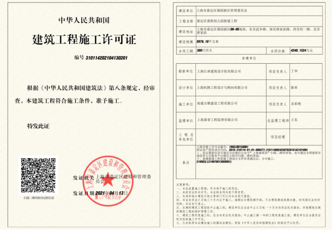 据悉,嘉胜幼儿园新建工程已于4月13日取得建设工程施工许可证,并正式启动施工。