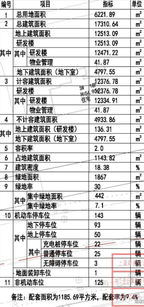 主要经济技术指标