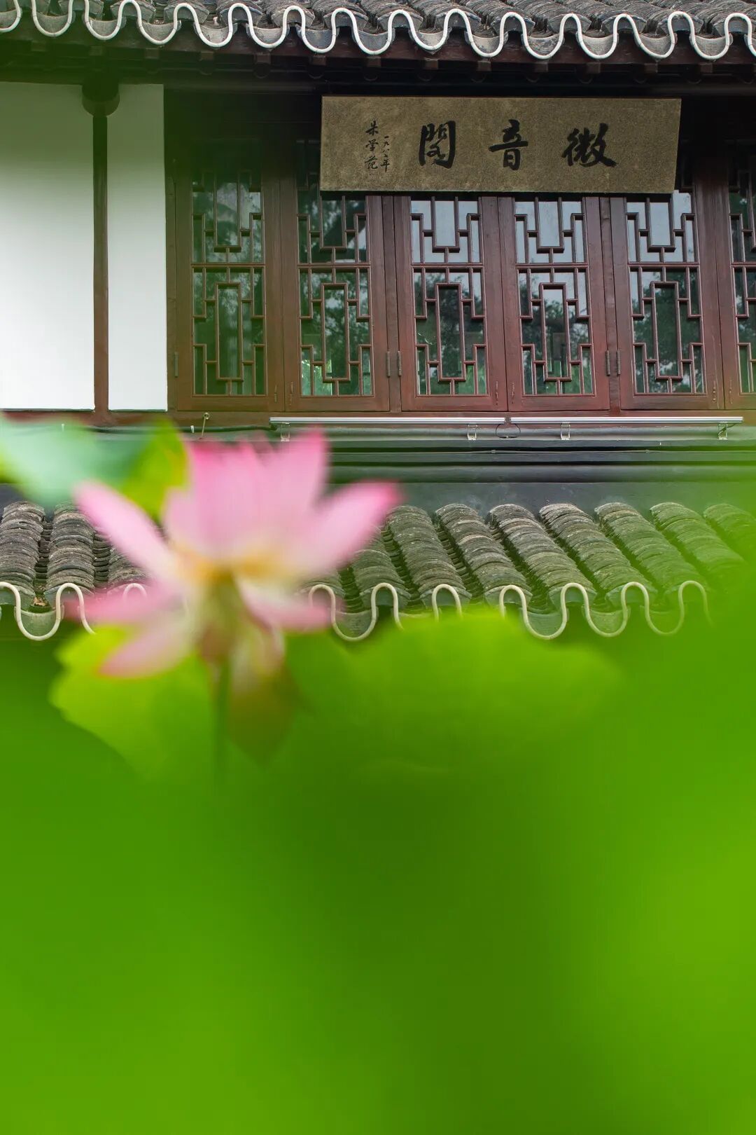 “四面垂杨十里荷,菡萏花开香满汀”此外,古猗园内有不少与荷有关的建筑、石桥、湖池、诗词,如荷风竹露亭、风荷桥、莲漪湖以及清代进士廖寿丰“十分春水双檐影,百叶莲花七里香”的对联,荷风送香,荷花颔首,荷池泛起微波,此情此景,触动了诗人的心弦,相信这悠悠五百年,满池荷花开,或许也会触动你的心弦。