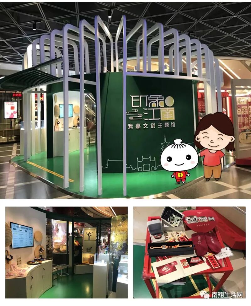 吃饱喝足之后,还有展看哦。在B1楼的“印象江南”我嘉文创主题馆,古朴的江南风格,别出心裁的场馆设计巧妙地融入了“艺术无穷大”“创意无止境”的理念。主题馆依托“艺品疁芳”文创品牌聚力发展,将推动嘉定本土文创设计新生力量发展壮大。