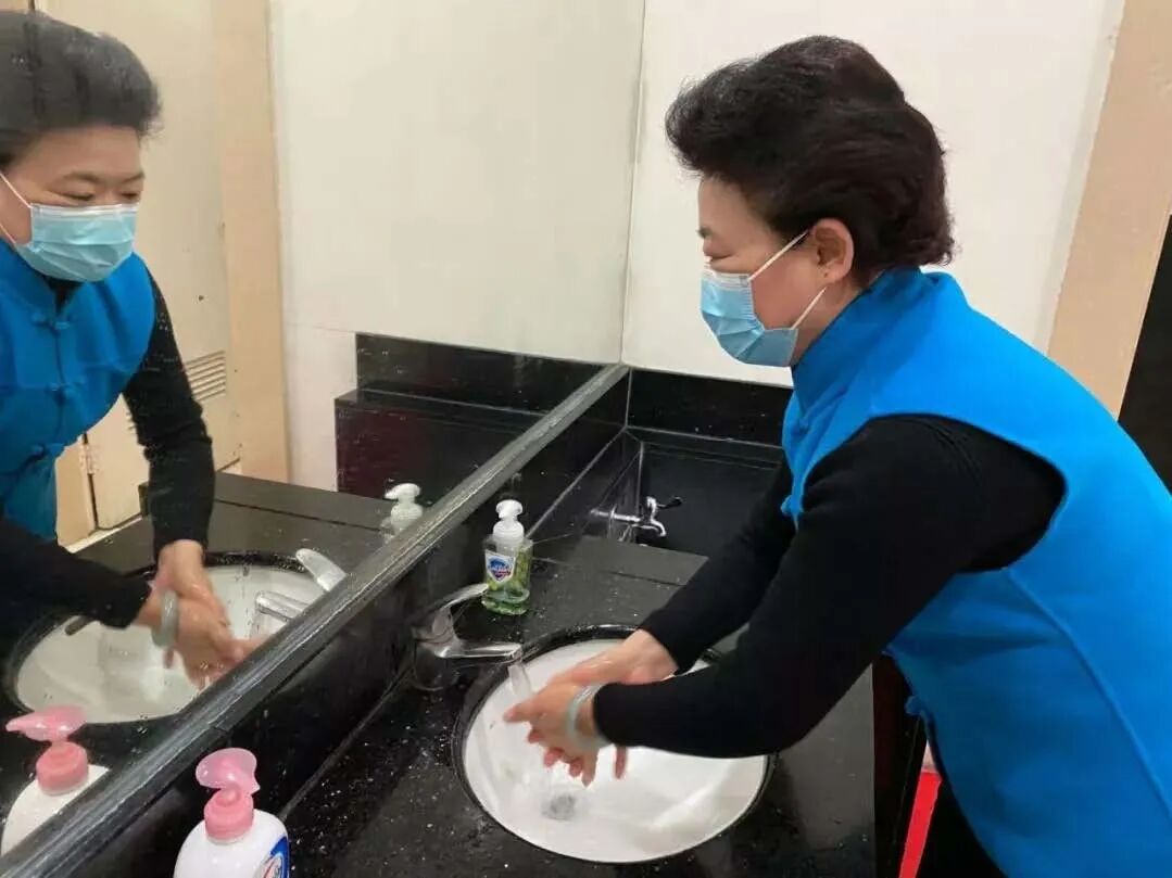 巾帼文明岗南翔老街景区、南翔镇永乐养老院正在紧张地消毒