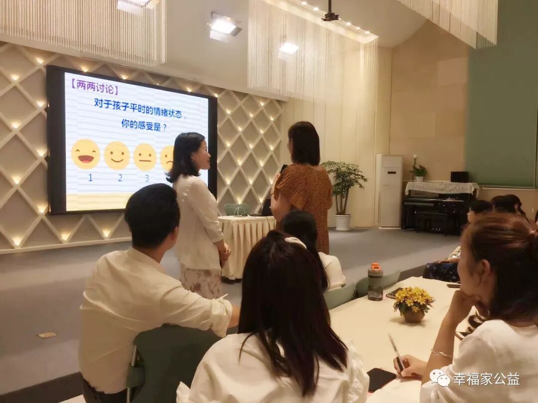 结束一天忙碌的工作,在优美舒适的环境下,家长们聆听一场关于情商教育的培训课,为自己充电,为孩子的教育储存知识。
