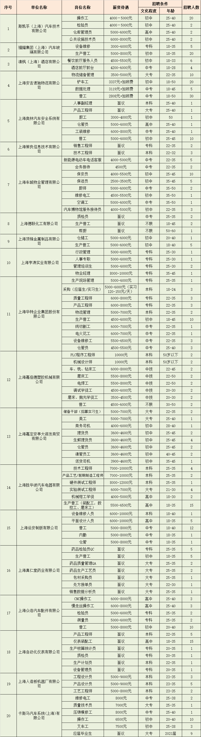 一、2020年安亭镇秋季招聘会
