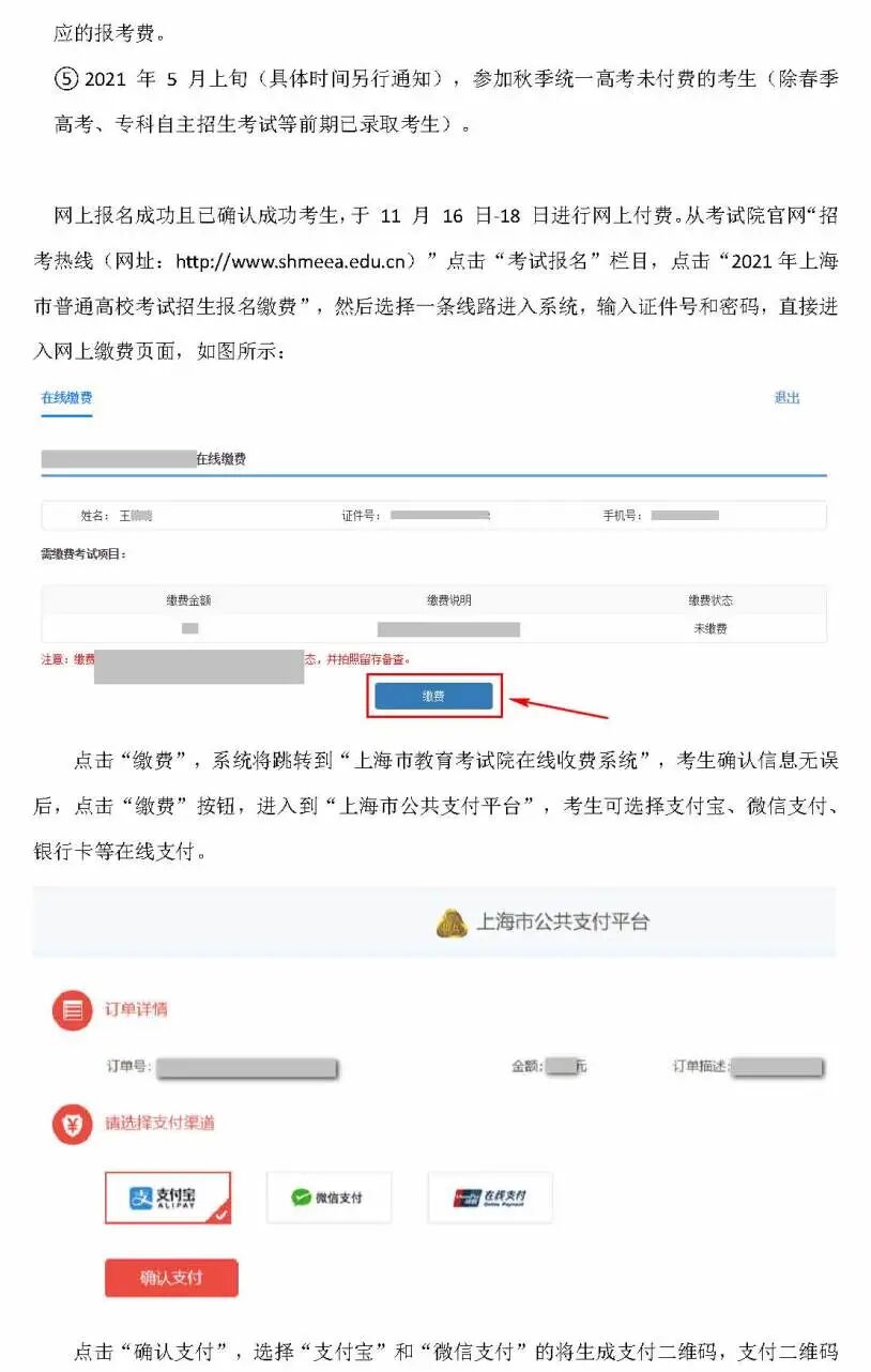 根据考试项目安排,网上付费采取分段付费方式。第一次网上付费安排在2020年11月16日-18日,主要针对勾选参加春季考试、1月份外语考试、艺术类专业统一考试的考生。考生在规定时间内登录“上海招考热线”网站完成付费。