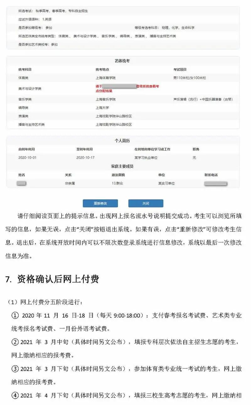 2020年11月13日-14日,由各区考试招生机构根据具体情况安排资格审核和信息确认。