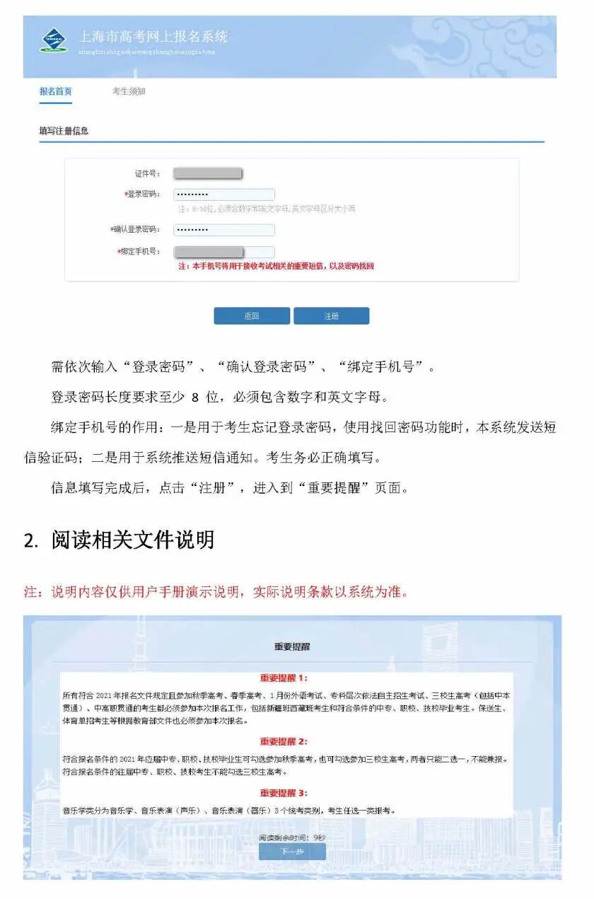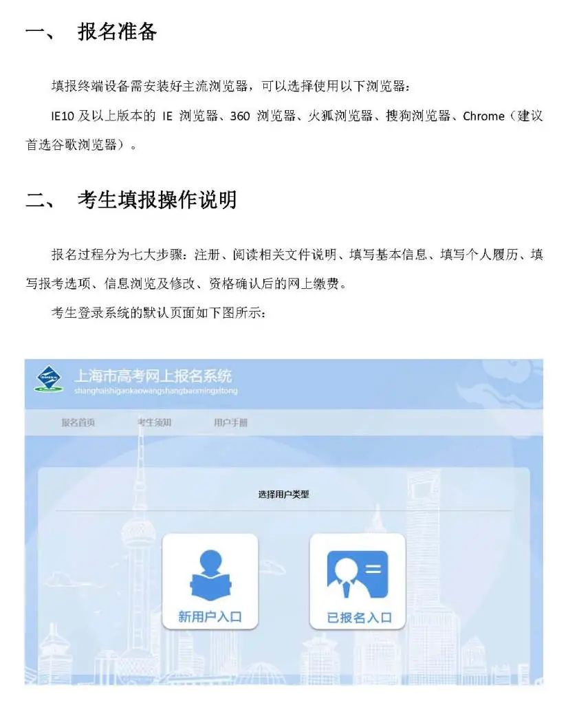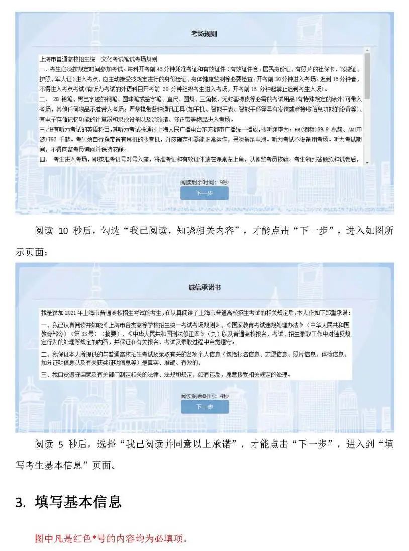 (4)按要求完成报名(具体流程见“2021年上海市普通高校考试招生网上报名用户手册”)。