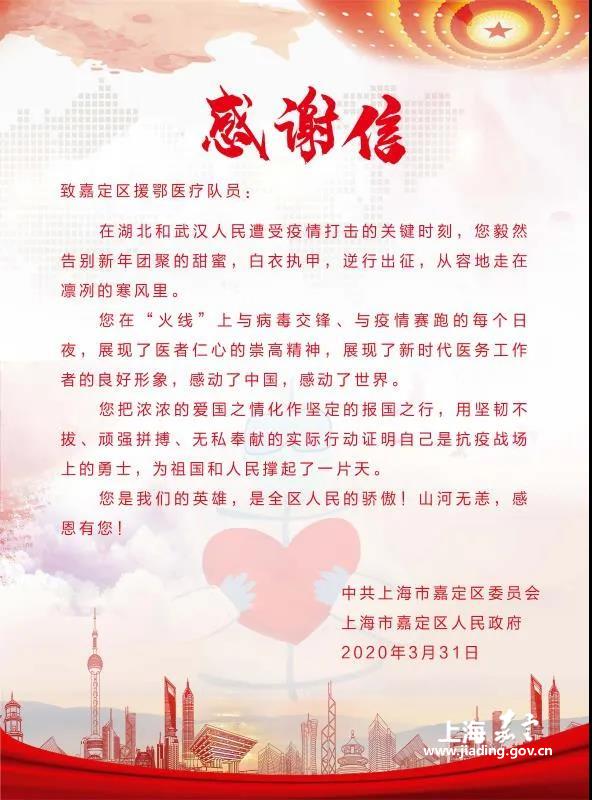 今天,嘉定援鄂医疗队的全部6名医护人员从武汉回到上海。英雄归来,请收下家乡人民的崇高敬礼和诚挚感谢!