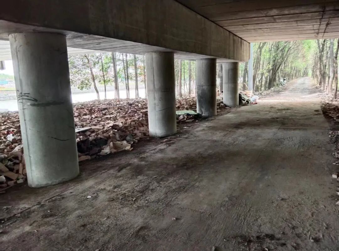 该违建点位位于六里村一座桥梁下,以桥梁主体为屋面,用于废旧物资存放及员工居住。由于违建点位临河靠林的位置特点及土地的公益属性,菊园新区规资所、水务所、社区管理办、社区平安办等违建整治工作组成员部门各司其职,多管齐下,使违建点位在短时间内完成移交,实现快速拆除。环卫部门负责对拆后垃圾进行及时清运,规资部门负责土地后续利用,确保点位整治有序进行。