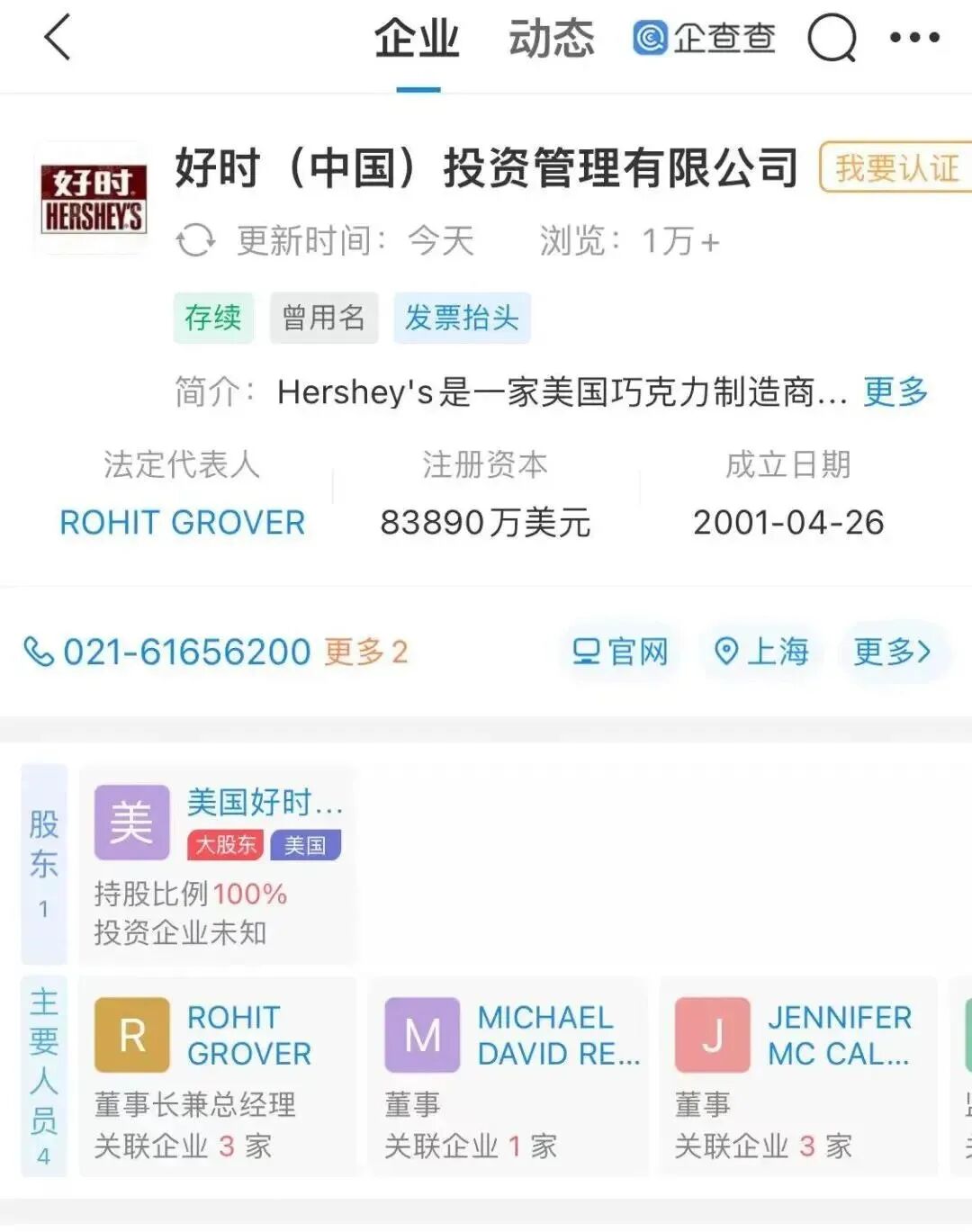该公司成立于2001年4月,法定代表人为ROHIT GROVER,注册资本约8.4亿美元,由美国好时国际有限公司全资持股。风险信息显示,该公司关联十余项诉讼案件,案由涉及买卖合同纠纷、销售代理合同纠纷等。
