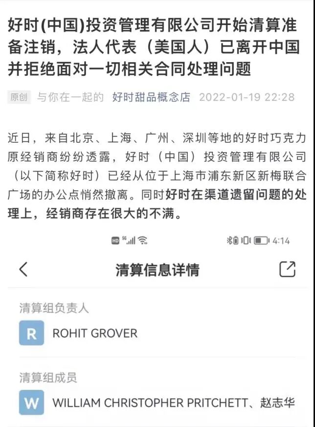 资料显示,好时(中国)投资管理有限公司已经于2021年11月进行清算。