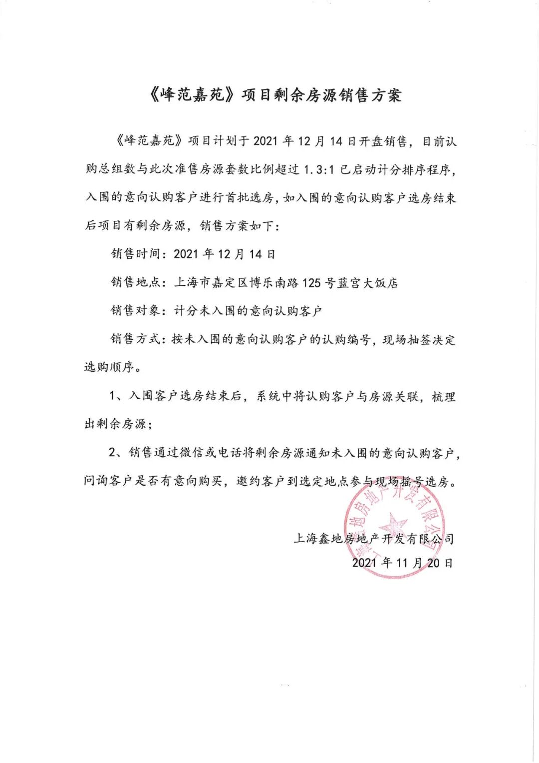南翔生活网之前报道过:【突发】最低均价仅需3.25万!第六批新房嘉定5盘正式官宣入市!,其中包括位于11号线/嘉闵线(在建)旁的金地峯范四期,就在今日(12月14日),嘉定这个热门楼盘正式发布剩余房源销售公告以及摇号排序结果(共376组),速速关注起来!