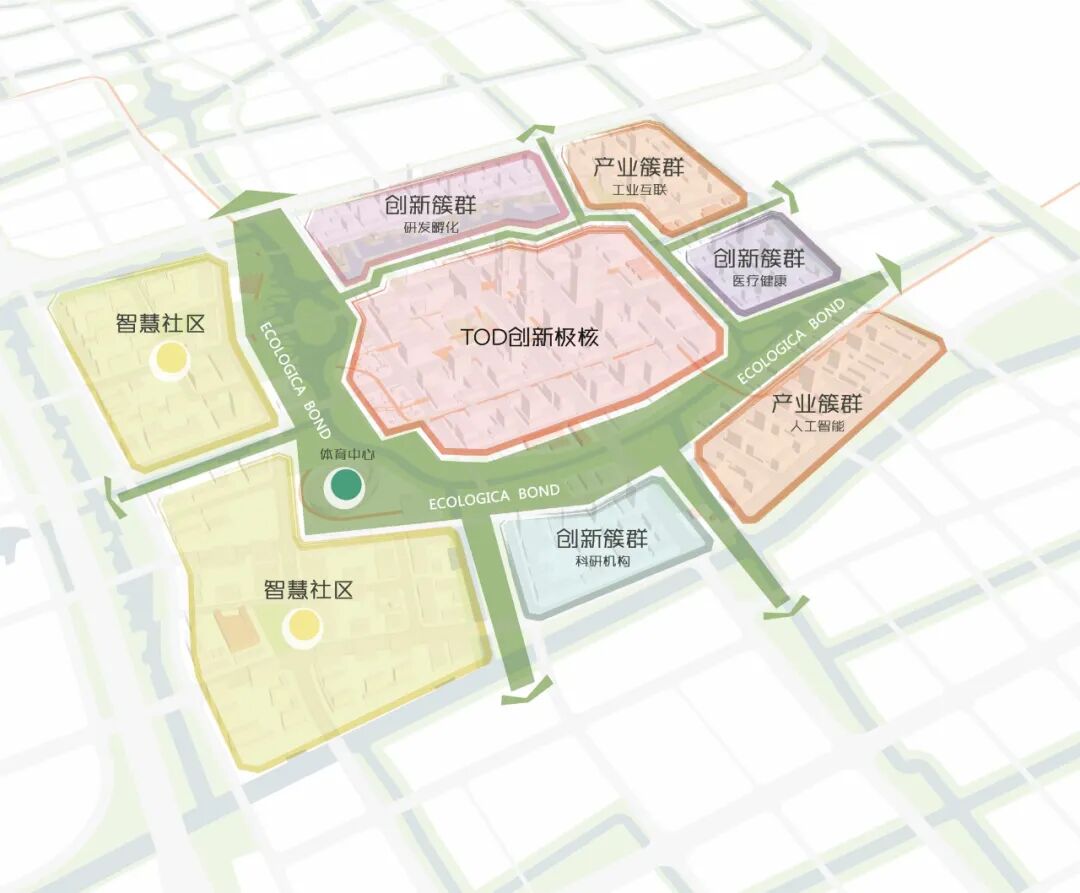 王梦亚告诉记者,整体空间规划中,“超级科创极核”是地区的服务核心以及产业的智慧大脑,依托轨交和BRT的十字换乘这个关键的“网络榫卯”,创造一个科创综合体、服务中枢、共享绿洲三轮驱动的绿色创新极核。在“超级科创极核”基础上,形成三大特色的创新产业群落,通过数字应用、智能技术、新兴产业等前沿优势产业集群的导入激活,实现产业技术与空间载体的高效兼容。