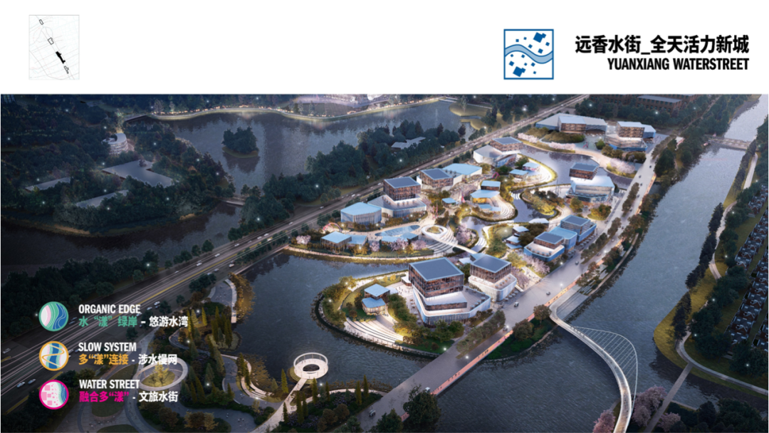 朱桥科技小镇重点地区设计方案优胜团队上海市上规院城市规划设计有限公司的核心理念是“嘉北创芯·烟火桃溪”,将朱桥科技小镇打造成为引领嘉定新城智慧发展的芯片引擎,汇聚地区烟火繁华的活力桃溪。