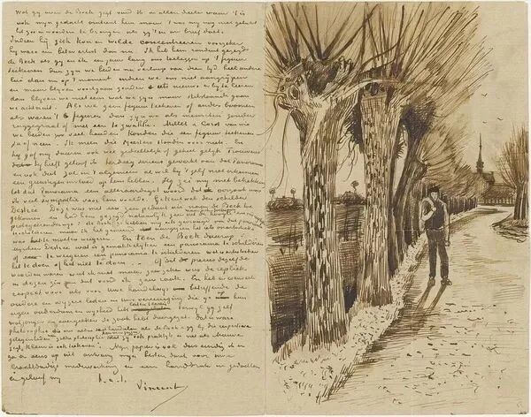 全剧从梵高和弟弟提奥之间来往的900余封书信展开,从梵高决心作画到开始走上绘画之路,立志“创作美与生命,散播爱和信心”;后来,梵高的绘画技术逐渐成熟,“我想画这样的画,画出真实人生”,却不受世人待见,“希望到底在哪里,前途难觅”;最后连高更都离他而去,他割下自己的耳朵,“我已经盼不到任何奇迹拯救我”,在完成最后一幅《麦田里的乌鸦》后饮弹自尽,留下绝叹“世上的那一切,看在眼里,却不能够拥抱在怀中”。