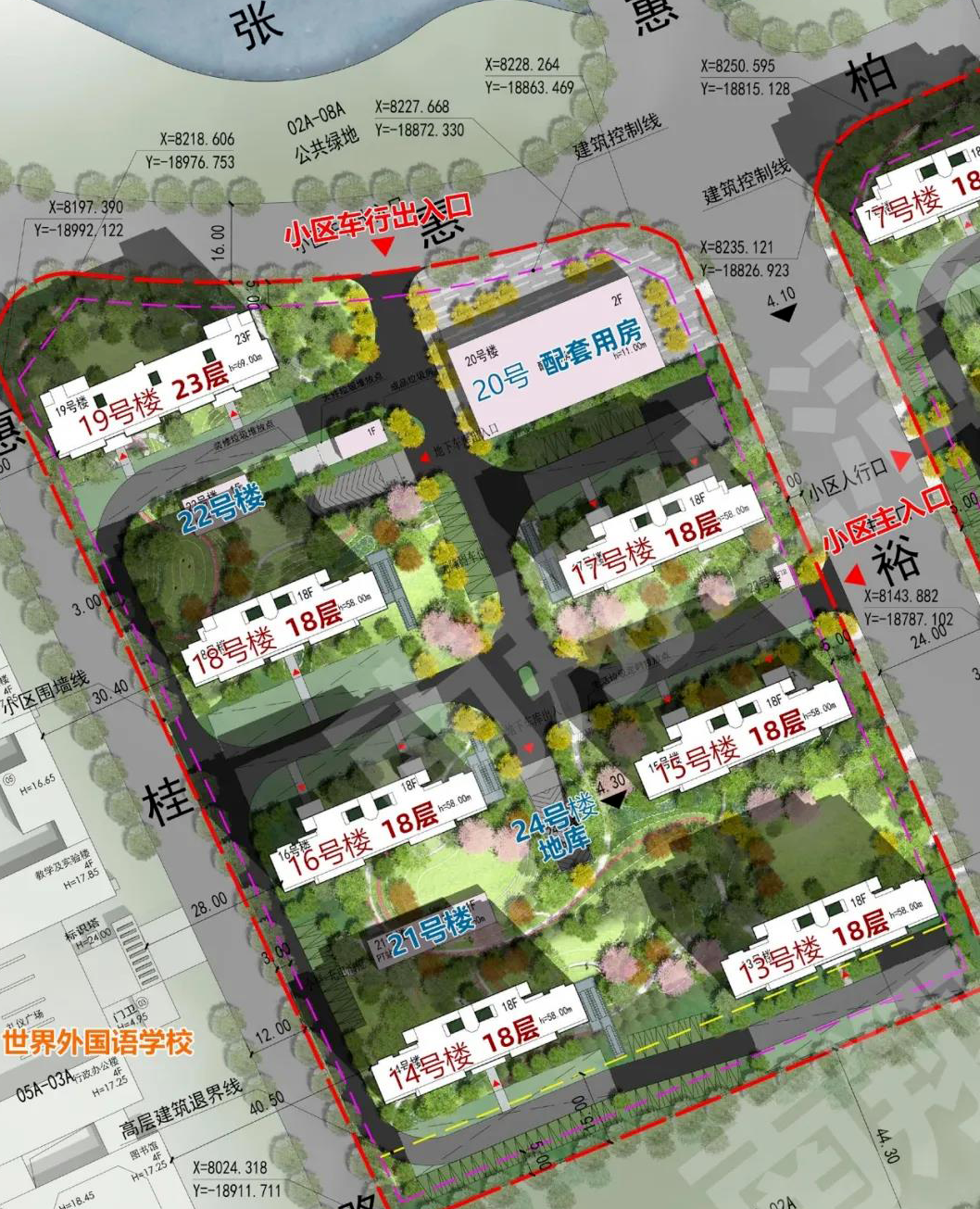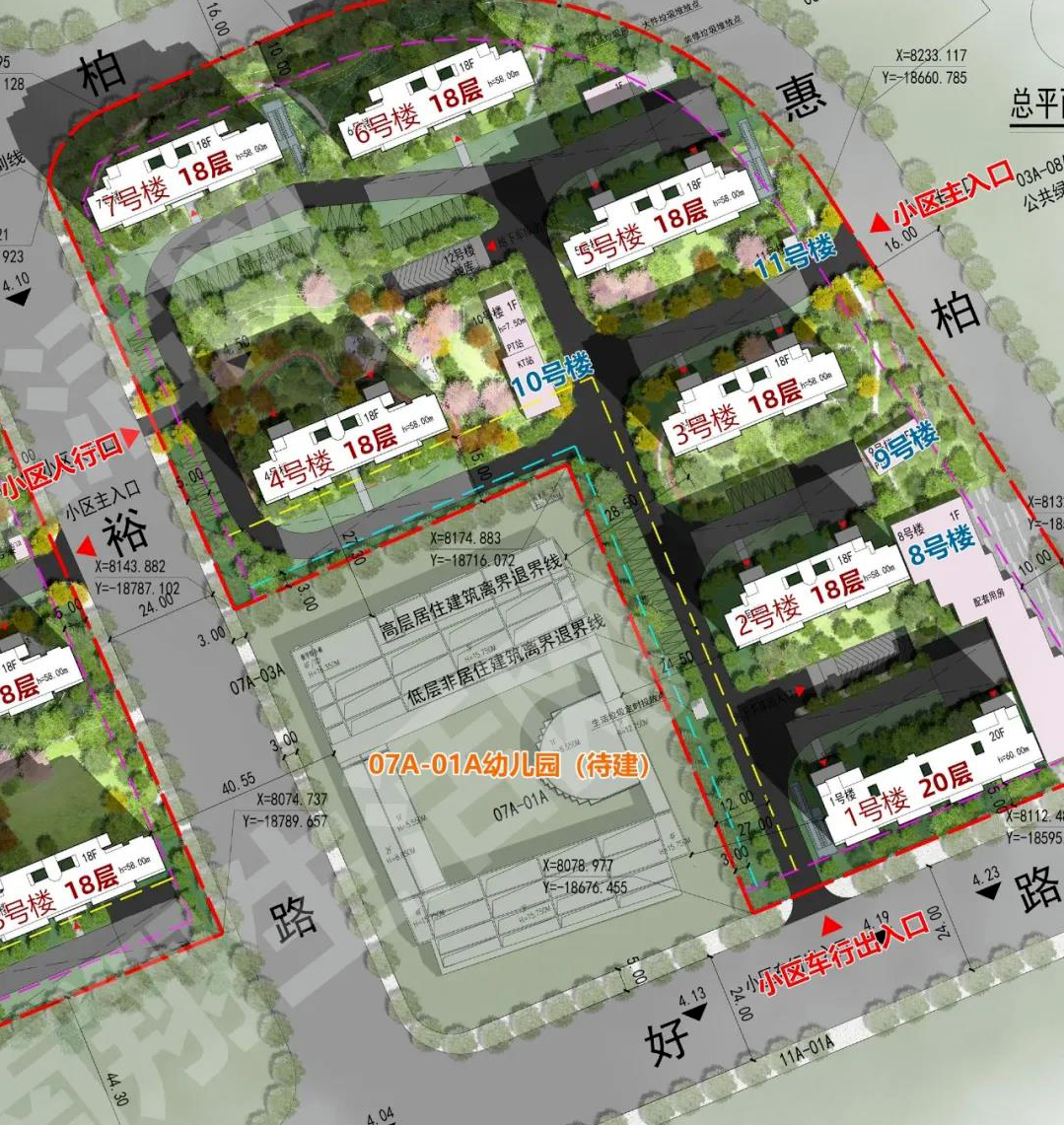 项目分为东西两个地块,东地块为11F+18F的小高层&高层,西地块为21-24F的高层。