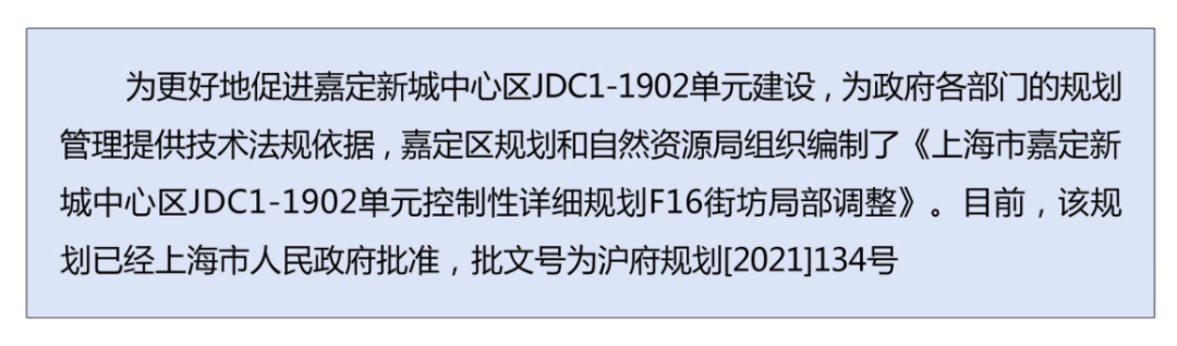 《嘉定新城中心区JDC1-1902单元控制性详细规划F16街坊局部调整》规划公布