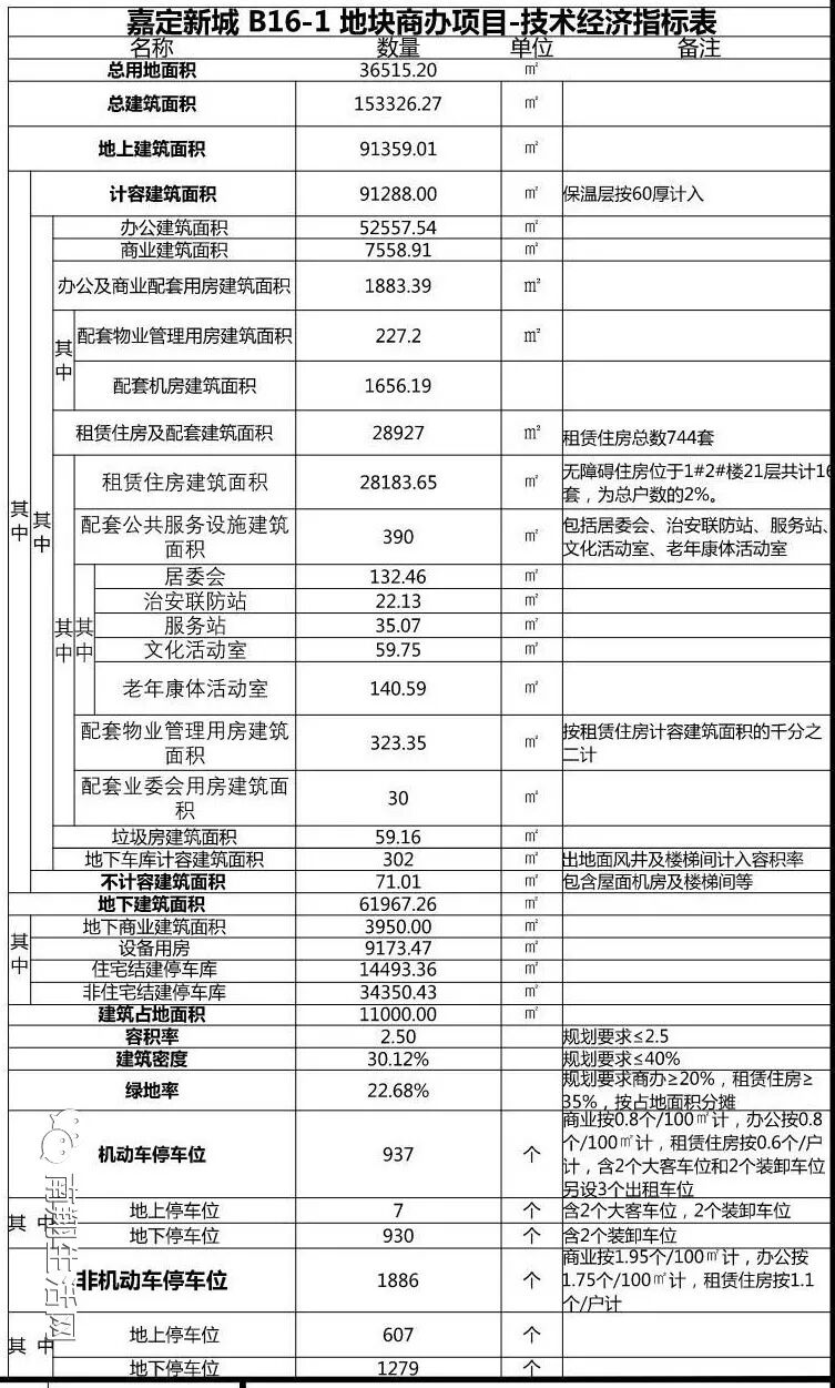 总建筑面积153326.27平方米(其中地下建筑面积61967.26平方米)计容建筑面积91288平方米,机动车停车位937个,租赁住房总共744套,租赁住房及配套面积28927平方米。