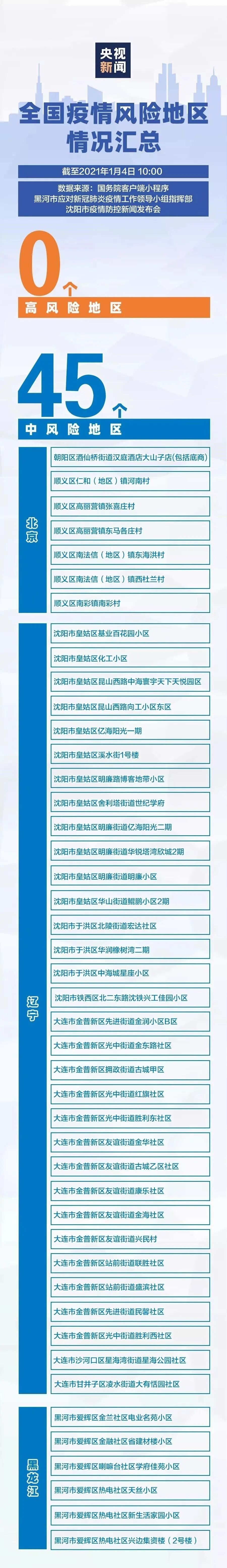 全国45个中风险地区