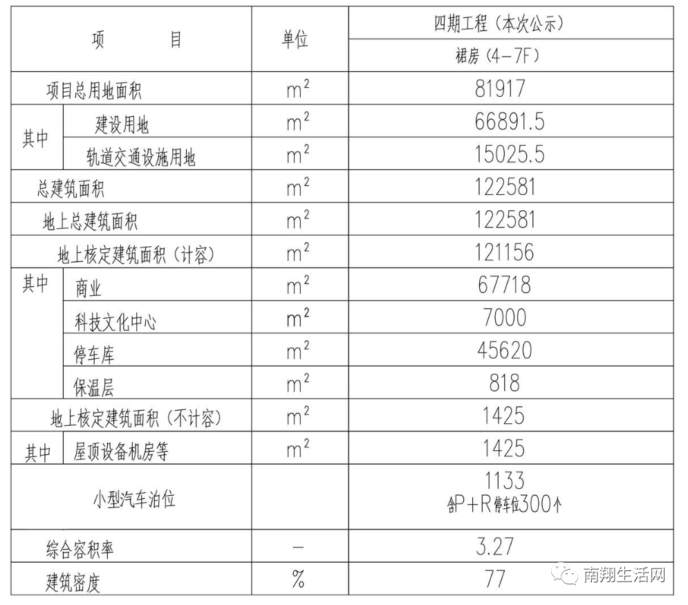 新建地上总建筑面积122581平方米,其中地上计容面积121156平方米,建设内容为商业和停车库,停车库共有小型汽车泊位1133个,含P+R停车位300个。