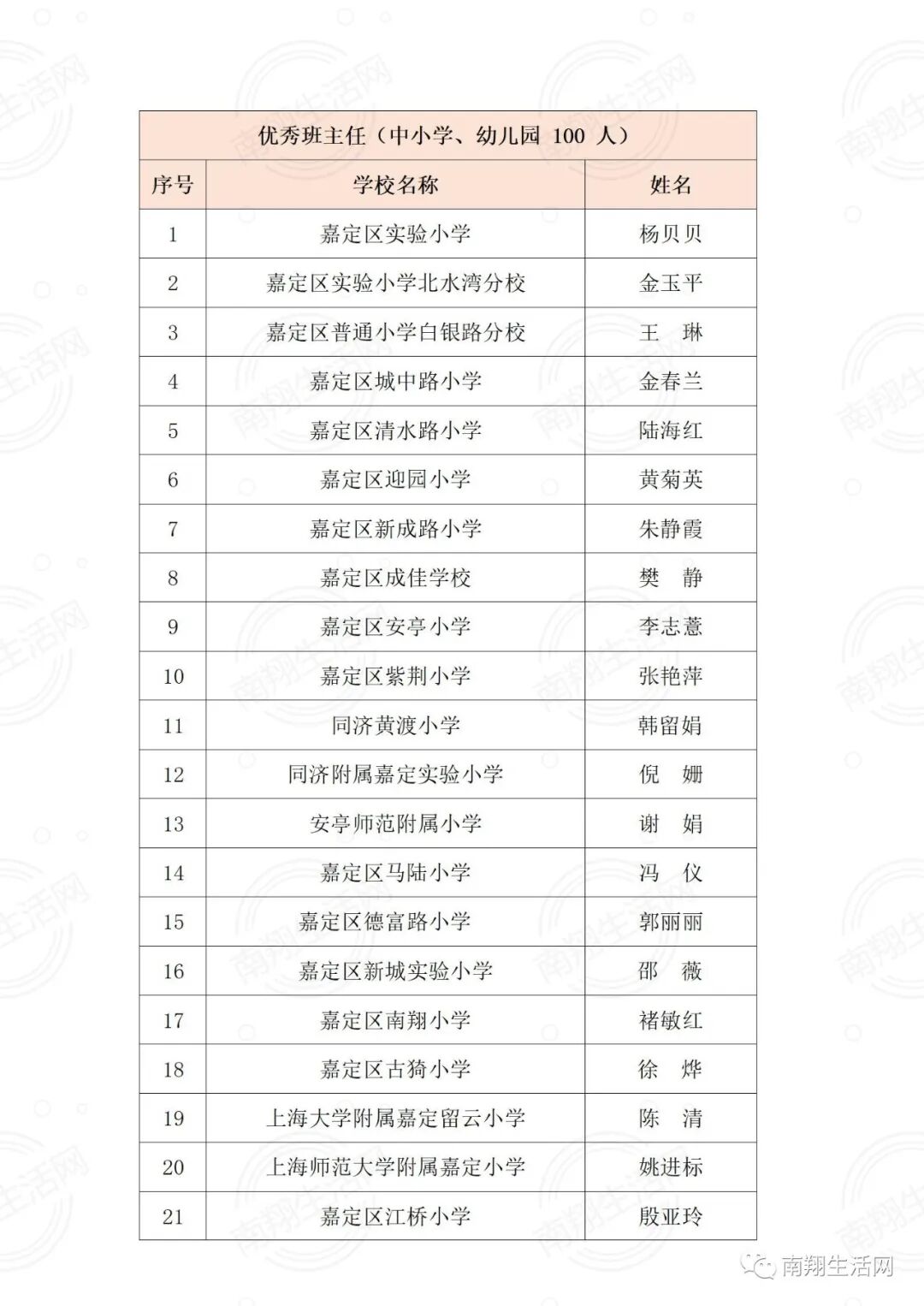 昨日,嘉定区第十届十佳(优秀)班主任、优秀德育管理工作者和首届优秀导师名单结束公示,名单如下!