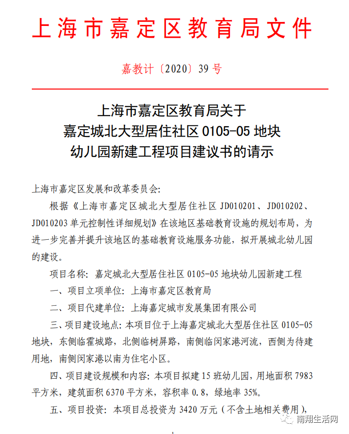 嘉定又有一所幼儿园要新建啦!!