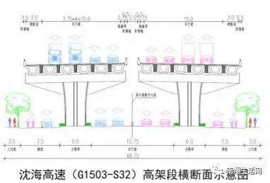沈海高速(G1503-S32)改建工程拟采用高架和路堤两种建设型式,其中北青公路以北至沪松公路段、沪昆高速至泖亭路段采用高架建设型式。