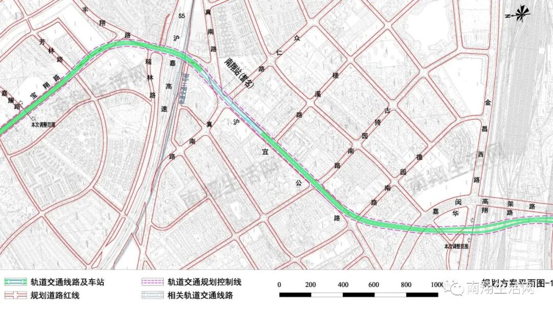 其中,嘉闵线(嘉耀路—众仁路)线路向东调整;结合轨道线路调整,局部调整嘉闵线南翔站方案及车站以南的轨道线路规划控制方案,实现平顺相接。