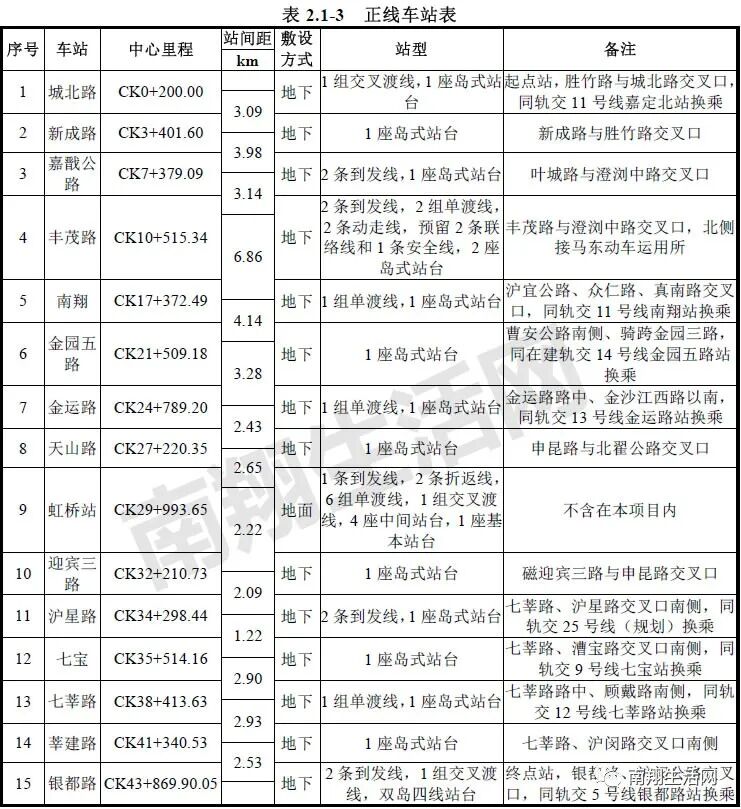 新建车站 14 座,均为地下站 14 座(城北路、新成路、嘉戬公路、丰茂路、南翔、金园五路、金运路、天山路、迎宾三路、沪星路、七宝、七莘路、莘建路、银都路)。