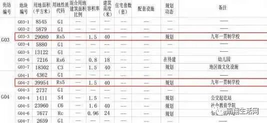 1)用地布局:G03-3、G04-2地块由教育科研设计用地(C6)调整为九年一贯制学校用地(Rs5)。