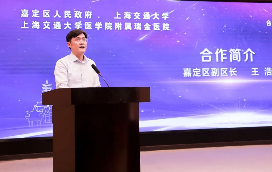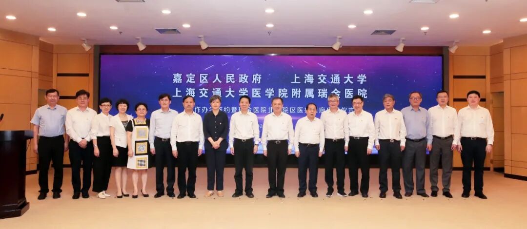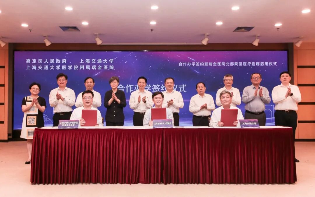 6月27日,嘉定区人民政府、上海交通大学、上海交通大学医学院附属瑞金医院合作办学签约暨瑞金医院北部院区医疗连廊启用仪式在区综合办公大楼广厦厅举行。嘉定区委书记陆方舟,区委副书记、区长高香,副区长王浩;上海交通大学党委书记杨振斌、校长林忠钦、副校长张安胜;上海申康医院发展中心副主任陈睦;上海交通大学医学院附属瑞金医院党委书记瞿介明、院长宁光,以及签约三方有关部门负责同志出席仪式。
