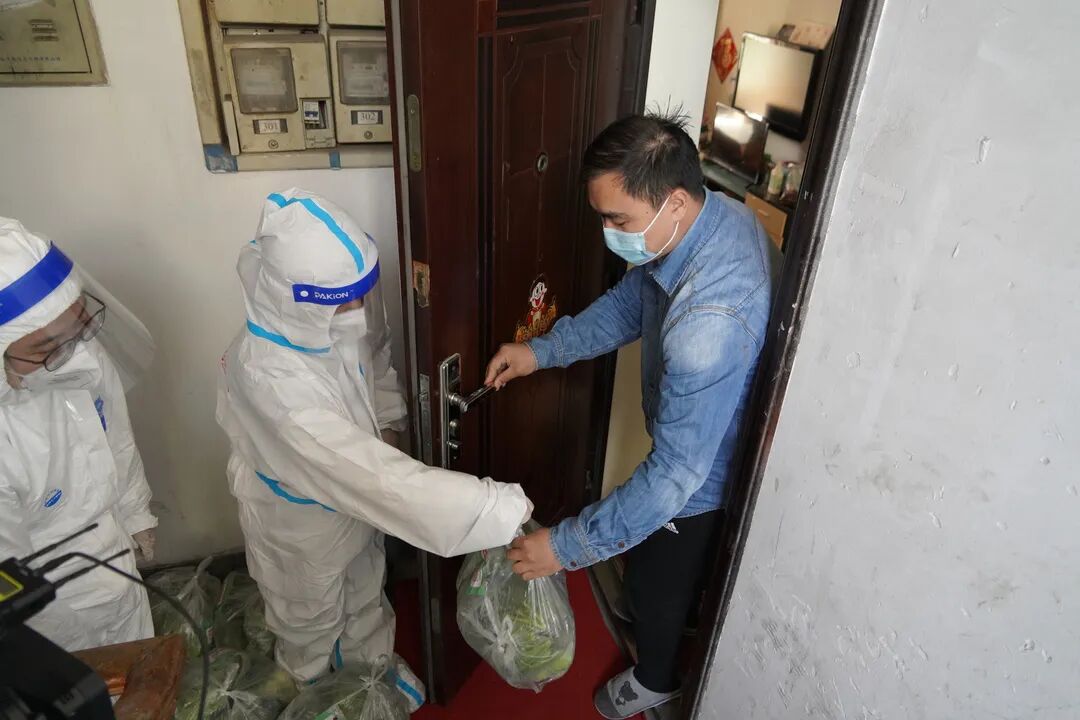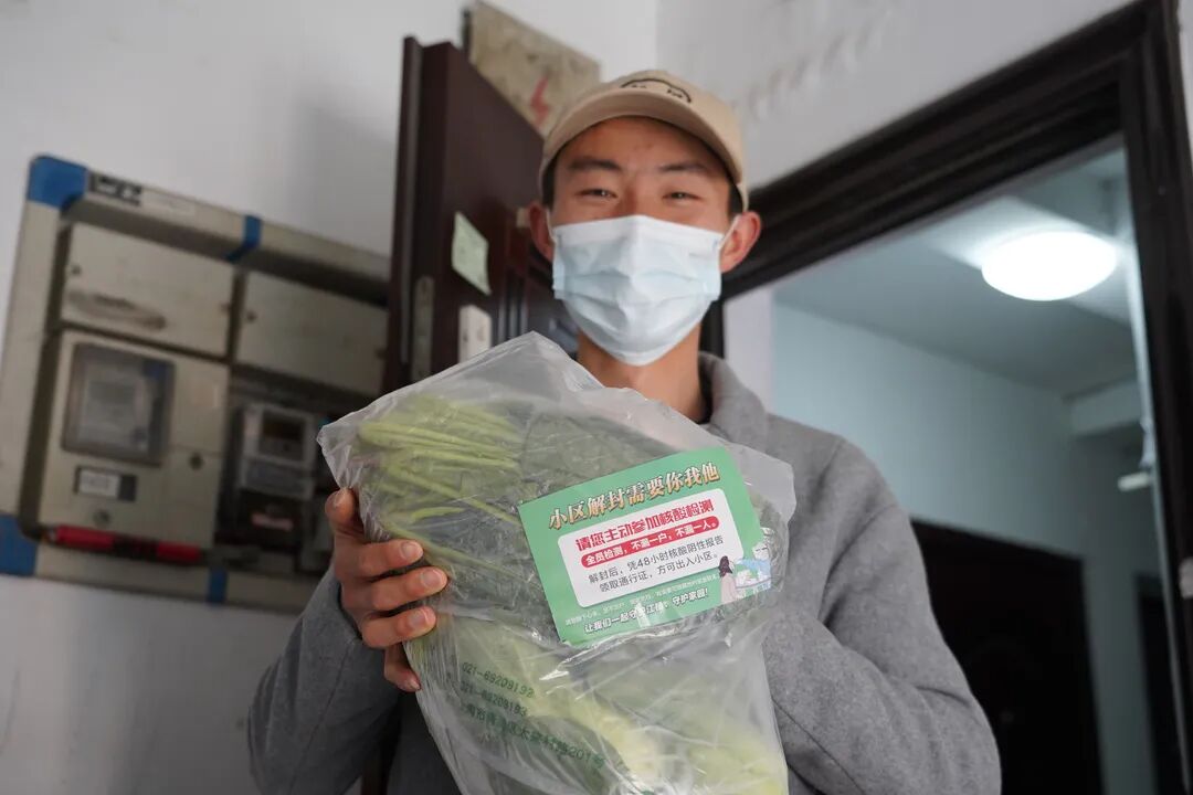居民杨磊是金桥社区志愿者之一,他和其他8名志愿者组成配送小分队,负责小区14个楼栋的送菜任务。在送菜同时,志愿者也会提醒每户居民主动参加核酸检测,记录领取情况。“我们将把这些信息汇总给居委会,确保不漏一户。”杨磊说。