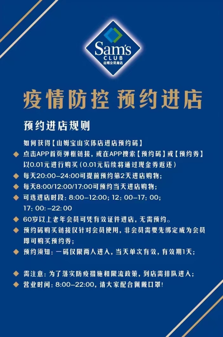 南翔生活网今日从山姆会员商店(宝山店)获悉